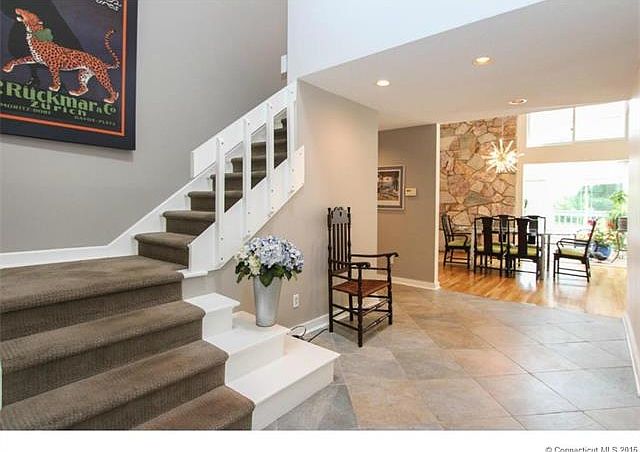 Stunning sun filled contemporary with many updates located on a cul de sac. Dramatic two story foyer that offers sweeping views of stone wall and overlooking a solarium. Spacious living room and dining room with a wet bar and fireplace. Wonderful kitchen with granite counters, stainless steel appliances and a breakfast nook. Completing the first floor is a family room with a vaulted ceiling and built-ins, a bedroom/den with a full bath, a mudroom, a half bath and a laundry room. Second floor offers a master en-suite with a spa-like bathroom. There is an additional bedroom, a new tiled bath and a loft office. A full walkout lower level with a recreation room, a fourth bedroom/den and a half bath. Not to be missed!