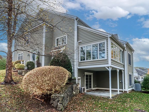 Experience the best of main-level living in this beautifully refreshed townhome in sought-after Newbury Village, Brookfield's premier 55+ community. Designed with an endless list of upgrades, this home offers the perfect right-size lifestyle; spacious where it matters, effortless where it counts. The inviting foyer opens to an open-concept layout featuring hardwd flrs, soaring windows, and a gas fireplace anchoring the great room. Just steps away, the main-level primary suite provides a private retreat with a tray ceiling and a spa-inspired bath featuring a soaking tub, dual vanity, and custom walk-in closet. The gourmet kitchen showcases custom cabinetry, granite counters, tile backsplash, double wall ovens, and a large island, creating a perfect blend of style and function. A glass door leads to a gorgeous sunroom, ideal for enjoying the wooded backdrop year-round. A powder room, laundry room, and direct garage access complete the first floor. Upstairs, a spacious loft offers flexible options for a den, office, or guest lounge, alongside two generous bedrooms and a beautifully appointed full bath. The finished walk-out lower level adds even more versatility; perfect for hobbies, media, or extended guests, while maintaining the home's low-maintenance appeal. Set within Newbury Village's resort-style community featuring a clubhouse, pool, walking trails, and Still River frontage, this home allows you to downsize w/o giving up space, privacy, or style. Ideally located in the heart of Brookfield near shopping, dining, and everyday conveniences - this is refined, easy living at its best.
