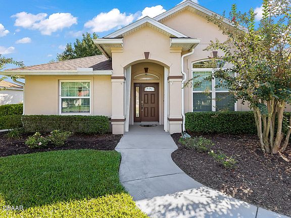 Meticulously maintained 3-bedroom, 2-bath home featuring a desirable split-bedroom layout for added privacy. Nearly every room captures beautiful water views while abundant natural light enhances the open, airy feel. Highlights include volume ceilings, an open floor plan, and a convenient inside laundry room. This home has been thoughtfully updated with a new roof (2021), new windows (2018, excluding sliding glass doors), HVAC (2016), and a whole-home generator (2023). Additional features include hurricane shutters for both front and rear porches (2017) and fresh exterior paint. All appliances convey—including the garage refrigerator and freezer—many with extended warranties for peace of mind. Nestled in the sought-after Ormond Green community and within the Ormond Beach school district, this home offers comfort, style, and lasting value. All information taken from the tax record, and while deemed reliable, cannot be guaranteed.