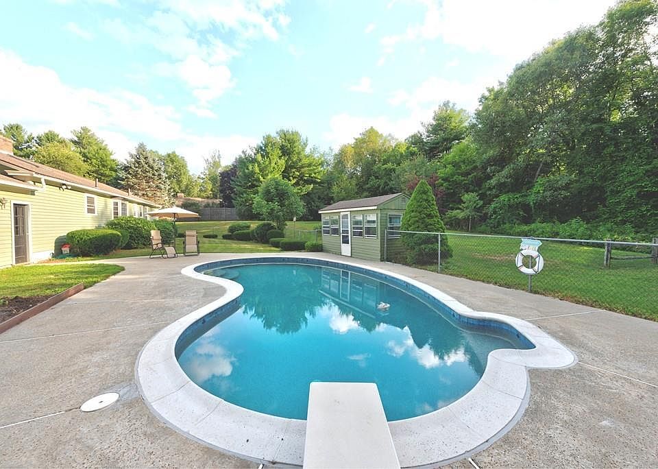 Sweet ranch on one acre lot complete with fenced in back yard and in-ground swimming pool, perfect for entertaining on those hot summer days! One story living with master suite, gleaming wood floors throughout most of the house including bedrooms! Charming dining area with built-in bench and cabinets, newer stainless cook top, oven and microwave, large living room, finished family room in the basement with fireplace, stone fire pit outside, and spacious 2 car garage are a just a few of the amenities offered. Conveniently located with just a short walk to Sterling Greenery Community Park, sports fields, Houghton Elementary and Chocksett Middle School and minutes to Rte 190, Sterling National Country Club, Sterling Ice Cream, Rota Springs, Meola's Ice Cream (can you tell we like ice cream?!) Meadowbrook Orchards, Davis Farmland and so much more. Great home in a great location!
