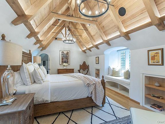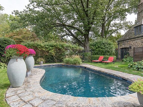 Sophisticated finishes, exquisite artisanal tile and stonework, and state-of-the-art technology come together with striking details and bespoke touches to enjoy and impress at every turn. The elegance and warmth makes this residence equally suited for both formal entertaining as well as casual, everyday living. Noteworthy highlights of this spectacular Tudor include a beautiful formal living room with a barrel ceiling, magnificent restored Cuban mahogany wood paneling, and an original wood-burning fireplace with Rare Rosso Levanto marble surround and herring-bone limestone interior, all in pristine condition. The gourmet chef's kitchen features top-of-the-line appliances, Calcutta Oro marble countertops, including an oversized center island, luxurious custom cabinetry, and breakfast area which opens to a lovely family room with custom built-ins. On the second level, the primary bedroom suite impresses with soaring cathedral ceilings, a coffee/drink area, and a breathtaking spa-inspired bathroom featuring radiant-heated floors, a built-in sauna, and a dramatic hand-carved black granite soaking tub. A boutique-style dressing room and second full bath with a steam shower complete the primary bedroom retreat. Three additional bedrooms, including a guest bedroom with ensuite bath, ensure comfort and conveniences for family and visitors alike.