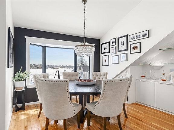 Located in vibrant Marina Bay convenient access to Boston this exceptional waterfront townhouse offers refined coastal living with breathtaking water views and sophisticated modern finishes throughout. Featuring three bedrooms and three beautifully renovated bathrooms including a spa like primary suite with soaking tub and custom shower this home blends style and comfort seamlessly. The chefs kitchen offers custom cabinetry a large island with quartz countertops and high end stainless steel appliances open to dining and living areas ideal for everyday living and entertaining. Glass and Chrome finish railings hardwood floors designer details custom closets and ample storage enhance the home. Enjoy private balconies deck garage parking seasonal pool gym ferry to Boston marina shops and restaurants truly waterfront living at its finest.