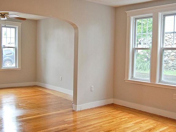 First floor unit of a 2-family house located just off Belmont Street, 2 blocks from public transportation, shops, restaurants, and other amenities. The unit offers a living area with ceiling fan, separate dining area, 2 bedrooms, fully-applianced kitchen and full bathroom. Gleaming hardwood floors and updated windows throughout. Kitchen includes gas range, dishwasher, disposal and refrigerator. Right off the kitchen is a pantry and washer/dryer hookups. No need to go down a flight of stairs with loads of laundry! Off-street parking for 2 cars included. Available July 1st. No pets, no smoking. Utilities are paid separately. First, Security, and Fee required. Tenant responsible for gas, electricity, laundry hookups only.