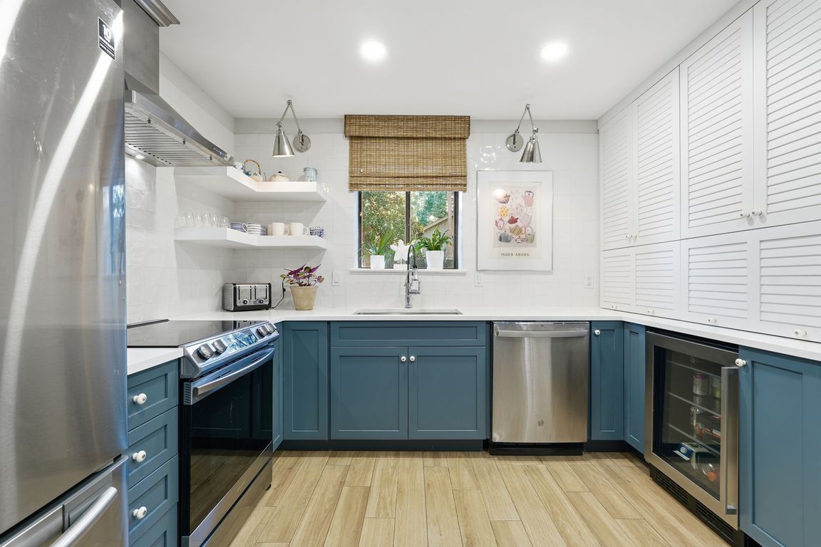 Stylish furnishingsUpdated kitchenCoastal designStainless steel appliancesRare floor planThoughtful design detailsQuartz countertops