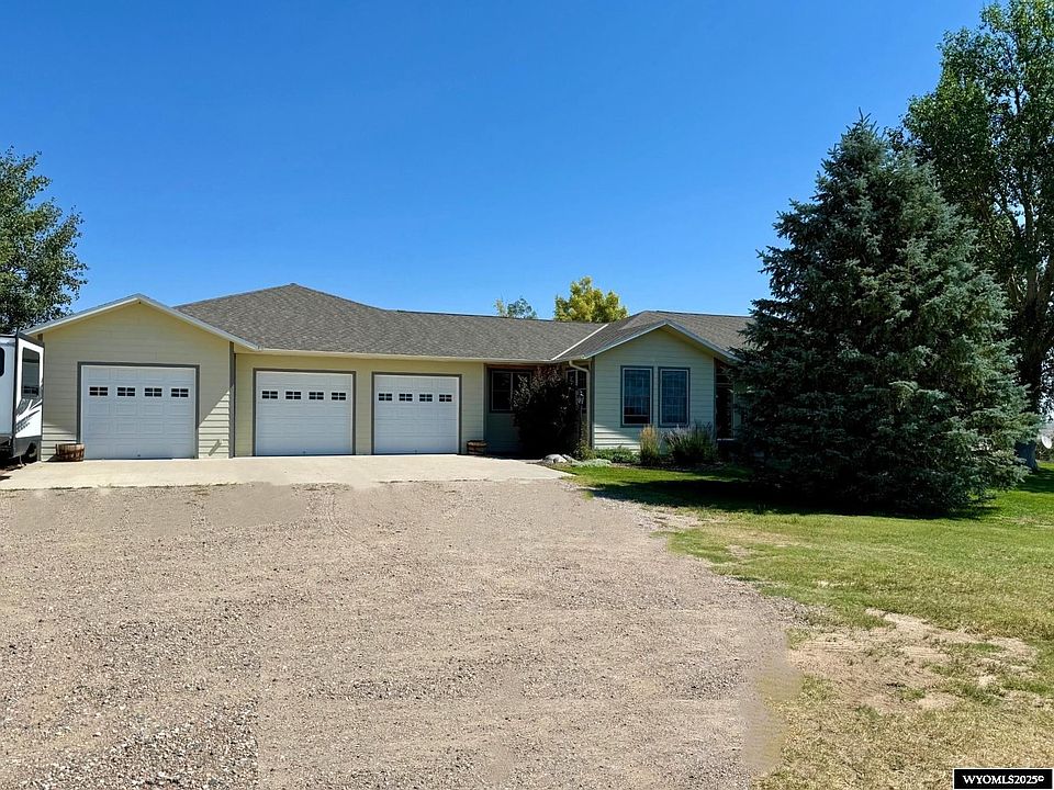Step into this beautiful custom-built home! You will love the large windows and excellent natural light. There are hardwood floors and vaulted ceilings. The living room has a fireplace with a pellet insert and built-in bookcases. The roomy kitchen features an AGA gas range, an island with a prep sink, and a coffee bar. The dining room has French doors leading to the deck. The master suite has a gas stove, walk-in closet, and two bathrooms. The bathrooms feature a walk-in shower, claw foot tub, and heated tile floors. Downstairs is a spacious family room with vinyl plank flooring, egress windows, and a pellet stove. Additional amenities include main floor laundry, 9' ceilings on the main floor, underground sprinklers, and central air conditioning. The 3-car attached garage has a heated workshop and is finished and insulated. There is a 768 SF pull-through Cleary building. The outdoor living space is equally inviting with a covered front porch, composite deck, and a patio with a pergola. There are scattered trees and flower beds, creating a park-like yard. Located on 4 acres, minutes from town. Call Listing Agent, Lisa Cochran, 307*331*2325