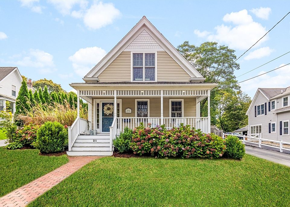 CHARMING and SUNNY farmhouse with a classic rocking chair front porch, just a short stroll to downtown Hingham's great shops and restaurants AND the train! 21 Hersey features a recently renovated kitchen with large island and quartz countertops, beverage nook, and sun soaked dining area with lots of room for all to gather— perfect for everyday living or entertaining. Off the kitchen is a cozy den/home office with French doors and built-ins, PLUS a spacious family room with gas fireplace. A nice sized mudroom with cubbies and half bath provide a great "drop zone" before entering the house. There are 3 bedrooms upstairs, including a lovely primary suite with vaulted ceilings, large walk-in closet and a renovated bath. Laundry and a family bath complete the second floor. High ceilings and new and recently refinished hardwood floors throughout! Enjoy the bluestone patio and large fenced backyard. Town sewer and natural gas w/plenty of room to expand!