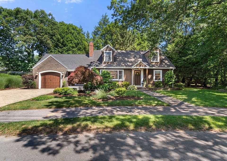Welcome to this beautifully updated, expanded Cape situated in a quiet Wellesley cul-de-sac. This home seamlessly blends classic New England charm with modern comfort, offering four bedrooms and two full bathrooms, ideal for both family living and entertaining. The first floor features an open kitchen with new appliances and large island, a stone fireplace family room with cathedral ceilings and French doors to a private stone patio, plus two bedrooms, a full bath, and a traditional dining room with wood-burning fireplace. Upstairs, you'll find two more bedrooms, another full bath, and ample storage. The finished basement includes two bonus rooms for a home office and play space, plus laundry. Numerous updates include new roof, heating system, mini-splits, hot water tank, + more. Attached garage, landscaped yard, and all, just a stone's throw from the top-rated and brand-new Hardy School, make this home the complete package.