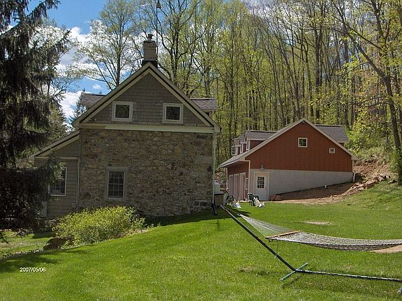 Wide pine floors, exposed 200+ yr. old hand hewed oak beams, 2 foot thick stone walls with deep windows, exposed finished stone work on the interior. 3 car, 1200 sf detached garage with an open loft above that contains a heated workshop and full bath. Radiant floor heat upstairs and in the garage bays, Hardie board fiber cement siding and wood garage doors. All on a five acre wooded lot with maple trees that can be used for sugaring. Property is being sold as is, some photos are a few years old. Owner is relocating out of state. Showings can be scheduled with the owner by sending a text message. Check back for schedule on first open house.