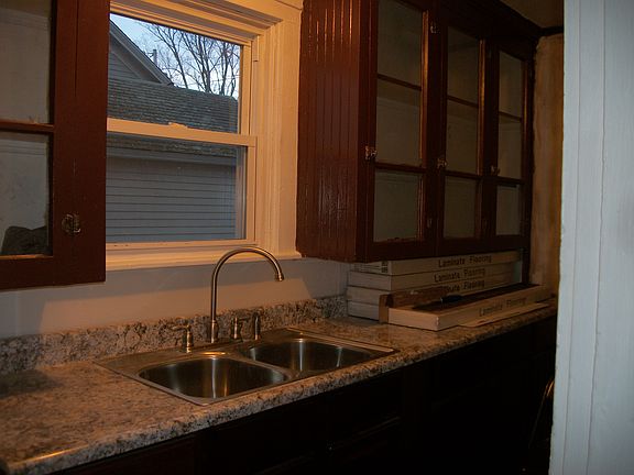 Kitchen overlooks backyardNew flooringStainless steel stove