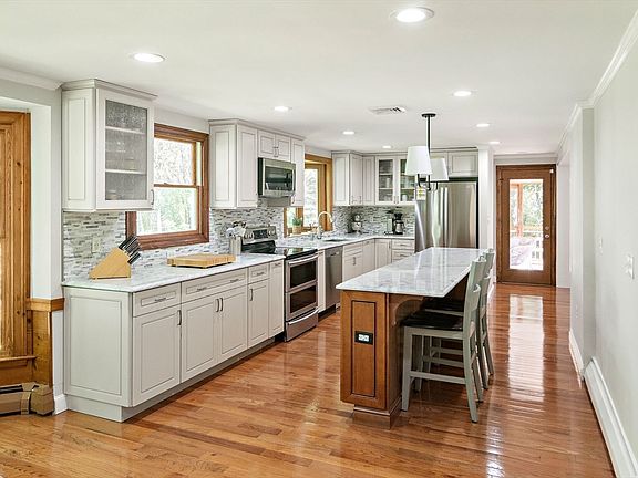 Welcome to the tree top oasis! Nestled in one of Wayland’s most desirable neighborhoods, just .2 miles away from the expansive walking trails in the Jericho Town Forest. This beautifully maintained Colonial with recent updates offers the perfect blend of peaceful living and unbeatable convenience. A classic Farmer’s Porch welcomes you into a thoughtfully designed home with a sun-drenched living room seamlessly flowing to an expansive deck and attached screened porch with cathedral ceilings and mahogany flooring. The updated center-island kitchen opens to a cozy family room with a fireplace. Upstairs are four bedrooms with hardwood floors, including a spacious main suite with two closets (one walk-in) and an updated bath. The finished lower level includes a large game room, additional versatile rooms, and a full bath. This home delivers comfort, function, and style in a gorgeous neighborhood setting in the top-rated Claypit Hill school district.