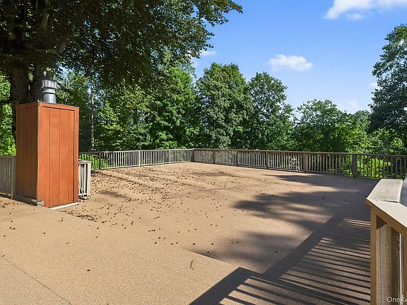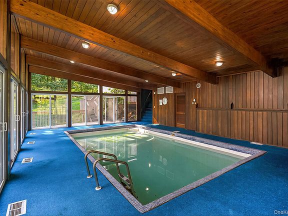 Welcome to this magnificent Contemporary Ranch with 5 bedrooms and 3 full bathrooms and a screened-in indoor/ outdoor pool. Sunken living room and dining room , oversized terrace, custom granite kitchen, 2 brick fireplaces, 2 car garage, in excellent condition on almost an acre of lush green park-like property