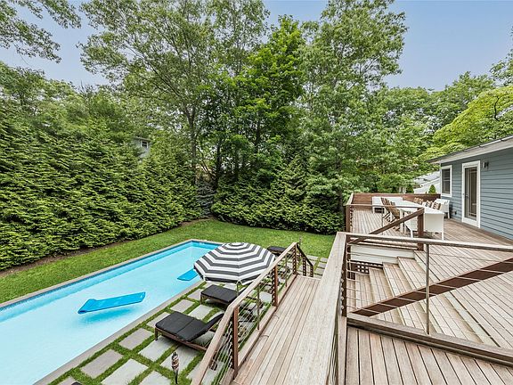 Discover chic style and easy living in this beautifully renovated turn-key home, nestled within Sag Harbor Village's prestigious waterfront community. Every detail of this residence has been meticulously considered for maximum enjoyment. The upper level welcomes you with an airy and open floor plan, bathed in natural light. A chic modern chef's kitchen awaits, flowing into a sun-filled great room - perfect for entertaining. This level also features two bedrooms and a newly renovated bathroom complete with a luxurious soaking tub and spa shower. Downstairs is an inviting retreat, offering a comfortable bedroom, another pristine bathroom, and a versatile bonus room. Gather in the recreation/media room or cozy up by the fireplace, and enjoy the seamless transition outdoors via full walk-out sliders to the yard and bluestone patio. A dedicated laundry area adds to the convenience. Step outside to your private paradise. Off the kitchen, a second-story deck provides elevated views of the manicured yard, adorned with extensive mature landscaping. The outdoor haven boasts an in-ground heated salt-water pool bathed in sunshine all day, complemented by a relaxing jacuzzi. Beyond your private sanctuary, enjoy the unparalleled convenience of Sag Harbor Village. Enjoy the private community beach with coveted mooring rights, or explore the charm of Main Street, its vibrant shops, and acclaimed restaurants.