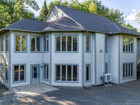 All the peace and solitude you deserve in this upscale custom executive home on 2+ acres overlooking the St. John River valley. Deer, eagles & other wildlife are frequently seen on this idyllic property. Built to exacting standards & featuring exceptional craftsmanship & materials, this home is designed to accommodate an extended family / income potential. The upper level includes an oversize primary BR, immediately adjacent to a spa-like primary bathroom & huge 2nd BR with ensuite. Sunroom can be converted to a 3rd BR with the addition of an armoire. The lower level includes an oversize primary BR, ensuite bath, office or gym & 4th bath. Both levels offer a spacious open floor plan awash in light from walls of oversized windows, large kitchens with abundant storage, islands, sunroom(s) finished in pine, two propane fireplaces & 9’ ceilings throughout. All levels were newly painted in a neutral tone. Upgrades include new H/W flooring installed in upper bedroom(s) & premium quality HW laminate installed in lower bedroom & office. All 4200 SF finished has radiant heated floors with 6 zones, energy efficient low-E argon windows, lights in all closets, Boston headers and custom trim, 4-head heat pump provides A/C for year-round comfort, dbl car garage, CV w/attachments, W/D hookup on lower level, wired for an alarm & prewired for a generator. Floors and some walls insulated for sound. New shingles in 2023. Taxes reflect non-owner occupied. Vendor is a licensed Realtor in NB.