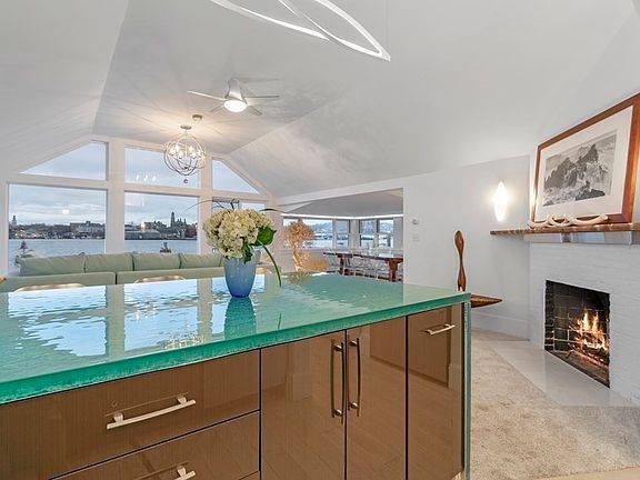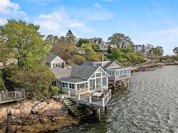 Welcome to Rocky Neck, one of the oldest working art colonies in the country and home to this great property. Nestled along the picturesque Gloucester harbor lies this stunning oceanfront property, boasting an open floor concept with 180° water views creating a true feast of the senses. This home offers a versatile floor plan that includes a large and opulent en suite bedroom, living room, dining room, kitchen and wood burning fireplace. Featuring a detached accessory dwelling unit with a bathroom, shower, kitchenette, sofa bed, balcony, French doors, with 1,265 sq. ft. of living space. The lot is 5120 sq.ft. of which 2800 sq.ft. is above high water, 2 parking spaces, a private deck, a Chapter 91 license for deck, water railway, and stone steps into the water, heated floors, washer/dryer, a new mini-split, and so many other great features. Located in close proximity to art galleries, shops, restaurants, beaches, this home truly captures the essence of the New England coastal lifestyle.