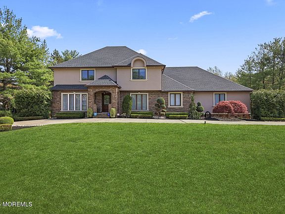 NESTLED AT THE END OF A TRANQUIL CUL DE SAC IS THIS BEAUTIFULLY UPDATED 4 BR 4 FULL BATH CENETR HALL COLONIAL BACKING TO WOODS. PULL UP THE CIRCULAR DRIVEWAY TO THE BRICK STUCCO CEMENT FRONT. SPACIOUS LR FORMAL DR GORGEOUS RENOVATED EAT IN KITCHEN THAT FLOWS SEAMLESSLY TO FR. BEAUTIFULLY DESIGNED KICTHEN HAS CUSTOM MADE CABINETS W/ WALNUT INTERIORS, CENTER ISLAND WITH SOLID WALNUT BUTCHER BLOCK. MARBLE COUNTERS & BACKSPLASH, GE MONOGRAM APPLIANCES. 36'' COOK TOP, POT FILLER WALLOVEN & MICROWAVE HUGE LAUNDRY/MUD ROOM COMPLETE W/ CABINETS, FARM SINK & ADJACENT FULL BATH. ALL SPACIOUS BEDROOMS INCLUDING MASTER BEDROOM, W/ FULL BATH W/SOAKING TUB & SHOWER, & HUGE ROOM WHICH CAN BE SITTING AREA, OFFICE, OR AMAZING WALK-IN CLOSET COMPLETE W/ SEPERATE DUAL SYSTEM HEAT & A/C. & PLENTY OF STORAGE FAMILY ROOM HAS FIREPLACE W/ GRANITE SURROUND AND MANTLE. FINISHED BASEMENT HAS NEW FLOORING, INCLUDES POOL TABLE, STUDIO, TV ROOM & FULL BATH. MULTIPLE SLIDING DOORS LEAD TO NEW MULTI LEVEL PAVER PATIO COMPLETE WITH GRILL, CUSTOM LIGHTING AND PATIO FURNITURE. UPGRADES THROUGHOUT THE HOUSE INCLUDE NEWER BOILER WITH 7 ZONES BASEBOARD HEAT, 4 BATHS AND LAUNDRY ROOM HAVE GRANITE COUNTERS AND RADIANT HEAT, ALL NEW PLUMBING THROUGHOUT, ALL NEW ELECTRICAL WIRING, NEWER TIMBERLINE ROOF, CEMENT STUCCO, VINYL SIDING, 2 CAR GARAGE, WHOLE HOUSE GENERATOR, DECORATIVE MOLDINGS, REFINISHED HARDWOOD FLOORS, NEW SOLID INTERIOR DOORS, ELECTRIC VEHICLE CHARGER. ALL THIS CONVINIENTLY LOCATED IN EAST FREEHOLD AND EXCELLENT SCHOOL SYSTEM.