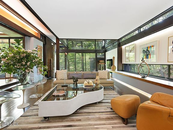 Amazing rental with pool! Serenity awaits you on coveted back-country cul-de-sac in this private, park-like setting rich with mature plantings and natural beauty. A unique, idyllic entrance leads you to the peaceful banks of the Byram River. This architecturally significant home features a dramatic expansion by mid-century modern architect Paul Rudolph. The open layout offers a stunning living room and screened porch with breathtaking views. Primary suite with large dressing room and bathroom. Two additional bedrooms with en-suite bathrooms complete the home. 2025-08-26