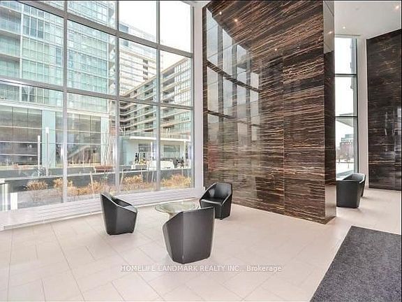 **Spacious 2 Bed 2 Bath Condo in Downtown Waterfront Area | Lake & CN Tower Views**Located in a high-rise building in the vibrant Downtown Waterfront community, this south-facing 2-bedroom, 2-bathroom unit offers stunning views of Lake Ontario and the CN Tower. Enjoy the convenience of city living with easy access to work, school, shopping, and entertainment. The neighborhood is full of amenities and waterfront activities. The building features 24-hour security and a full range of facilities, including a gym, indoor swimming pool, sauna, yoga studio, and private cinema. The suite boasts hardwood flooring throughout, a functional split-bedroom layout, and a modern open-concept kitchen equipped with Miele stainless steel appliances. Floor-to-ceiling windows provide expansive, unobstructed views, capturing the shimmering beauty of Lake Ontario. Includes one parking space and one locker. Interior: 836 sf + 35 sf balcony. Available for occupancy: September 7th.