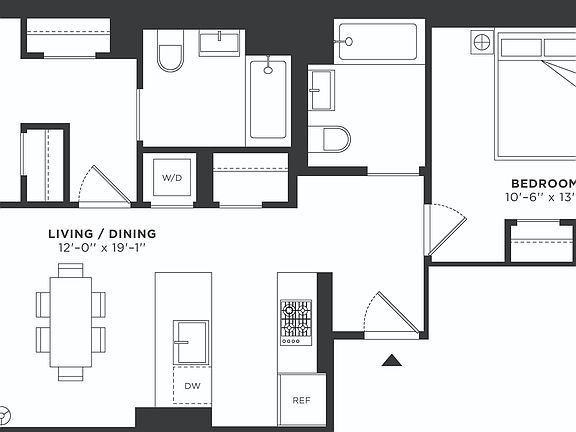 Our gorgeous apartments exude elegance, with striking matte black fixtures, wide-plank hardwood flooring, and charming built-in features. Savor decadent meals prepared in your fully equipped gourmet kitchen, complete with stainless steel appliances, and a gas stove. Dark wood cabinetry provides the perfect contrast to stunning white stone countertops and a striking herringbone tile backsplash.