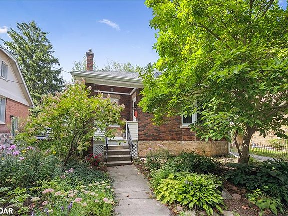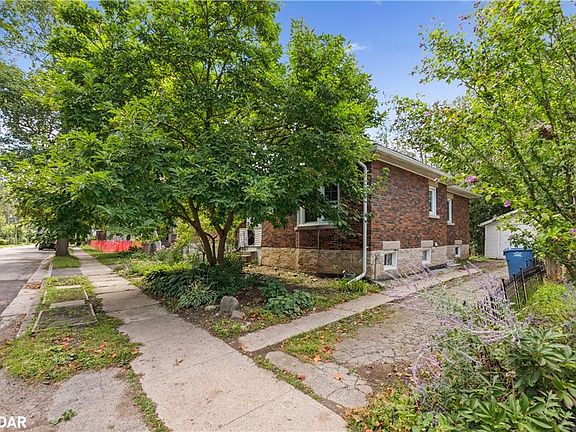 This charming Old University home blends character, functionality and location. The main level offers two bedrooms and a full bath, while the lower level features a bright two-bedroom, one-bath LEGAL accessory apartment perfect for rental income or multigenerational living. Built in the 1920s, the home welcomes you with its whimsical eyebrow window, perennial gardens, a beautiful pink magnolia tree and an inviting front porch for morning coffee or evening unwinding. Inside, the foyer opens to a generous living room with timeless details like a French door, a decorative fireplace with mantel and original wood flooring throughout. The adjoining dining room, highlighted by an antique chandelier and abundant natural light, provides a beautiful space for gatherings. The kitchen adds personality with its pop of red tile and classic black-and-white floors. Two serene bedrooms are tucked at the rear of the home, accompanied by a 4-piece bath featuring a spacious vanity and playful green tile accents. Downstairs, the legal accessory apartment offers excellent rental potential, complete with two bedrooms, a full bath and shared laundry. Outside, enjoy a private patio with views of a picturesque stone wall, plus a detached garage with plenty of storage for bikes, tools and outdoor gear .Recent updates include a new heat pump and water heater (2024). Steps from parks, trails, the river, the University of Guelph and Downtown, this delightful home pairs historic charm with everyday convenience.