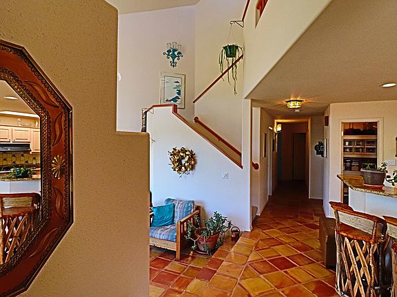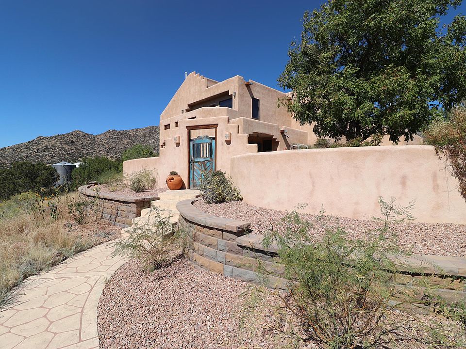 Beautiful mountain setting with views just 5 minutes from Tramway Boulevard. Enjoy country living with all the conveniences of the city nearby. Electric and passive Solar makes very low utility costs all year!!! Courtyard entry offers multiple patio areas with great vistas. Light Saltillo tile flooring in all living areas. Granite counters and newer appliances in kitchen. Two living areas on main level, and both have access to covered patio. Office area upstairs has closet. Energy efficient home with Pella windows. Solar system is owned and will convey to new owner. Oversize 2 car garage w/workshop area & large closet. Room to park boat, RV, multiple vehicles. All appliances except freezer in laundry will convey. New Septic system just installed in October!! Floor plan in docs!