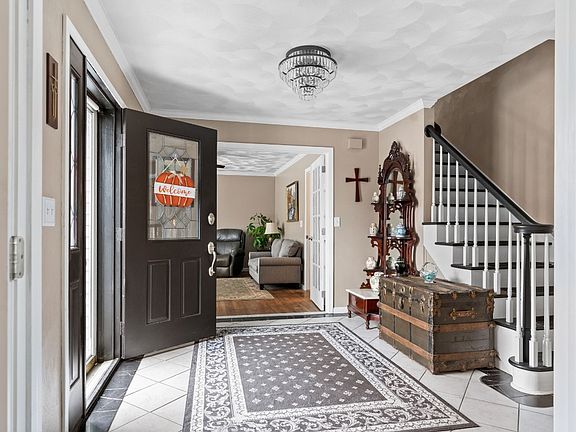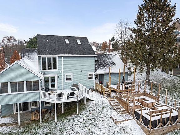Welcome to this stunning and spacious home featuring elegant design throughout. Enter through the grand marble foyer with French doors on both sides leading to the great room with a cozy fireplace and adjoining formal dining area. Hardwood floors and tile flow throughout the main level, which also includes a formal living room, half bath and laundry room. Charming three-season sunroom that opens to a large composite deck with amazing views. The beautifully updated kitchen boasts granite countertops, a marble backsplash, Shaker-style cabinetry. Full walk-in pantry. Step outside to enjoy a new deck area ideal for barbecuing or a future hot tub, along with a beautifully landscaped yard featuring a raised garden bed. Upstairs, the primary suite is a true retreat with floor-to-ceiling windows capturing the views, walk-in closet, and a spa like ensuite. The walkout lower level with 10-foot ceilings is ready to be finished for even more living space.