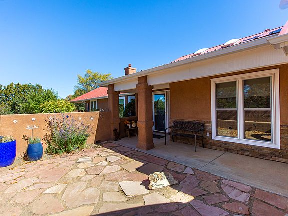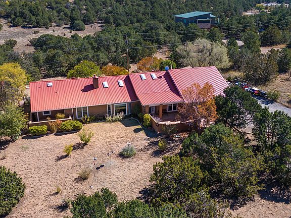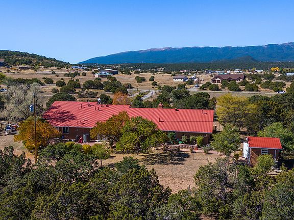 Seller offering a 1% (of purchase price) credit to buy down interest rate. Serene mountain retreat. Fully fenced 2 1/2 acres-privacy & useful land. Amazing eastern slope Sandia views. Inviting home w/ courtyard entrance into beautifully update home. Hardwood floors, stunning stone fireplace, & built-in dry bar. Spacious kitchen w/ SS appliances, cherry wood cabinets, island, new backsplash & counters. Beautiful wood-look title floors through the kitchen, laundry, &office/4th bdrm. Owner's suite is a sanctuary w/ private courtyard and spa like bathroom including a jacuzzi tub. Enormous, east facing, back patio 24 x 40' perfect for entertaining all of your loved ones. Workshop/shed w/ windows & power. Raised planting beds, peach tree, & beautiful yard or could be pasture. Horses welcome.