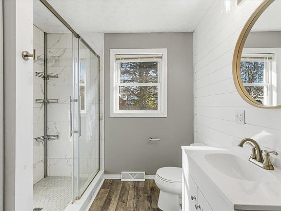 The newly renovated bathroom is a true standout. Featuring a custom-tiled shower with a rain showerhead, glass door, and a shiplap accent wall, it offers a perfect blend of Maine charm and spa-like luxury. New lighting and modern fixtures tie the look together for a space that feels elevated and timeless.