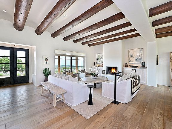 Completely renovated, this gorgeous custom 3-bedroom 3.5 bath residence offers modern elegance and top-quality craftsmanship on 10.87-acres in Tesuque. Single-level home with no interior steps. As you enter, you're greeted by breathtaking mountain views in every direction, showcasing the majestic Sangre de Cristo and Jemez mountains. The stylish living room/dining area is enhanced by beams from Ted Turner’s New Mexico ranch. Built-in cabinets and a contemporary wood-burning fireplace add to the charm, making this space ideal for entertaining or relaxation. Culinary enthusiasts will delight in the exquisite kitchen, featuring Zelige Moroccan tiles, top-tier appliances, an expansive center island, and access to an outdoor patio which increases gathering areas for al fresco dining and entertaining. Retreat to the primary suite with a private outdoor terrace, a luxurious ensuite bath, and a spacious walk-in closet. Two additional guest rooms, each with their own ensuite baths, ensure comfort and privacy for family and friends. The media room, complete with a gas fireplace and coved ceilings, provides a cozy space for movie nights. Savor your own heated pool and covered patio area featuring a built-in grill and refrigerator. The front portal is situated perfectly for enjoying stunning Santa Fe sunsets. Attached two-car garage with mudroom. A prime location close to Bishop’s Lodge Auberge Collection Resort, Tesuque Village Market–a local gathering spot, El Nido restaurant, the world-renowned Santa Fe Opera.