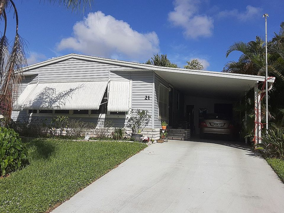 This lovely home wasn't on the market for long. Take a look! 1344 sq.ft. under air, 2/2, vinyl-sided, furnished, upgrades, huge Florida room. Perfect for you and your pet! Newer appliances, most furniture will stay with enough dishes to get you started.From the rear of the home's Florida room you can see the lake and keep track of the water fowl that visit. There are some great shade trees, too. To the right of the backyard is the pet exercise area for the community. A/C new in 2019 New water heater in 2024, new washer in 2008, kitchen appliances upgraded in 1995-96. New roof approximately 2025 Clam shell awnings, plexiglass and metal shutters. New ceiling and windows in the Florida room, approximately 440 sq. ft. of extra living space. You'll be amazed! Triple built-in cabinets and shelves in the living room will highlight your favorite things, especially with the spotlights above. The double bay windows have space for houseplants, too. The dining room has more built-in cabinets and china cupboards, and you'll love the built-in desk in the kitchen. Entertaining? The prep area and sink on the kitchen island let you visit with guests who can be seated around the breakfast bar, too.Convenient guest bathroom has access from the hallway or the guest room which has a walk-in closet. The en suite master bathroom has a garden tub and separate remodeled shower stall. Both bathrooms have linen closets. The master bedroom has ample closet space between one long double closet and a second closet in a corner of the room. Both rooms have queen beds.The owner has marked all pieces that do not convey so if you see this house in the next week or two, you will know what goes.Spanish Lakes Country Club Village (SLCCV), in Fort Pierce, Florida, is located just a mile from U.S.1 and only a few miles from both Florida's Turnpike and I-95.Spanish Lakes Fairways (SLF) is adjacent to I-95 (at Exit 138) and only a few miles west from US1. SLCCV and SLF are just a few miles from Vero Beach restaurants, entertainment, shopping (including the area's only outlet mall), art galleries, museums and botanical gardens, churches, and medical facilities.In addition to the FREE GOLF FOR OWNERS at the Spanish Lakes facilities (SLCCV-9 holes, SLF-18 holes), Island Pines Golf Course, a full-size course, is close by. Island Pines is open to the public and frequently offers coupon discounts making it quite inexpensive. Other good full-length golf courses are within 10 minutes of either Spanish Lakes facility.Historic downtown Fort Pierce is the home of the Sunrise Theater where great entertainers such as Bill Cosby are often the headliners during "the season".If you like baseball, the New York Mets spring training games are a short drive away at Digital Domain Park in Port St. Lucie. And, during the summer the St. Lucie Mets (Class A, Advanced) play often at Digital Domain Field. Most games are open seating and often coupon discounts are available for food and tickets.And then there are the beaches! Drive over one of several causeway bridges to North or South Hutchinson Island where you will find state parks and FREE beaches galore! You can visit the Navy Seal Museum, then walk across the parking lot to the beach to swim or watch the windsurfers at play!