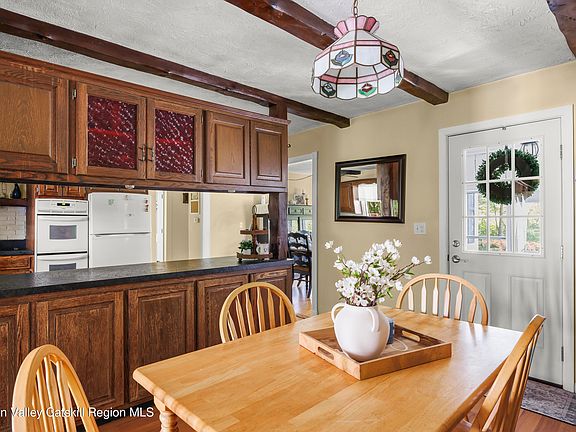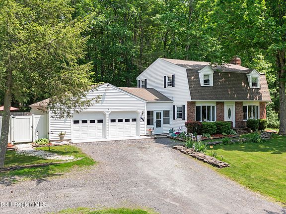 Welcome to this beautifully maintained Colonial home, perfectly situated on 3.1 acres of scenic land in Catskill. Step inside to find sunlit rooms and a spacious living room featuring a cozy wood-burning fireplace, creating a warm ambiance and a natural connection to the outdoors.