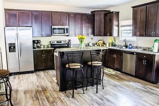 Dream of living near the beach? This stunning home is just 1.9 miles from the water, offering you the perfect lifestyle without compromising on space or luxury. With nearly 2500 sq. ft., 4 bedrooms(2nd floor) and 2.5 baths, this home provides all the room you need for a comfortable and modern living. As soon as you walk in, you'll be greeted by a long entryway that leads up to a bright and open floor plan, designed for both entertaining and everyday convenience with tons of natural lighting. The elegant engineered laminate floors, graceful archways, and stately columns created a timeless look, while the gas fireplace adds a cozy touch. The home is prewired for surround sound and features a smart panel, with the latest in home technology. The living room/sitting area has a warmth to it that just invites you in to relax. The open concept transitions flawlessly into the kitchen area with upgraded cabinets, sleek stainless steel appliances, granite countertops, a large island.