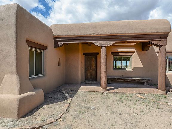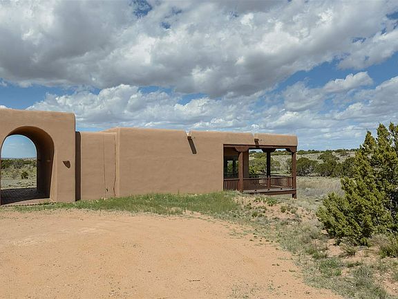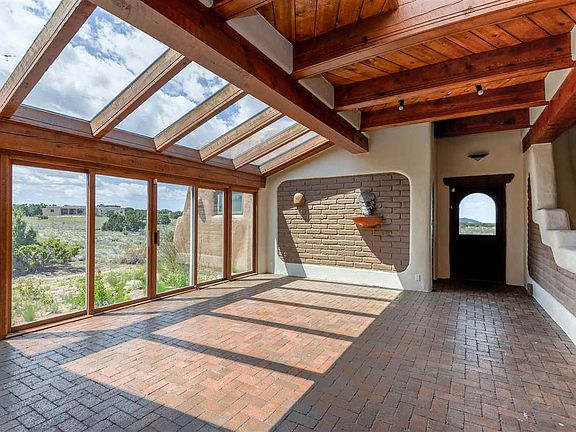 This is a large partial adobe home that sits just on the edge of Eldorado. The rolling treed lot backs up to wide open spaces and vistas as far as the eye can see. This may be the most private home in Eldorado. The home is set on the lot so that four of the five bedrooms in the main home enjoy private sunset and mountain views through glass doors that lead to their individual private patios. The guest house is very private, separated from the main home and has views of its own! The home boasts many southwest features including exposed adobe, kiva fireplaces, vigas, and nichos. There is a sunroom with water and drains to allow for an oasis of house plants to be grown year round. The main home has trombe walls and other passive solar features The separate office has a more of a modern feel with walls of tall windows, stained concrete floors and a wrap around deck that is to die for. A truly spectacular property and take in what a beautiful place the southwest can be.
