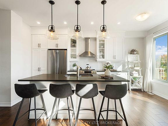 Welcome to Hansler Heights in Thorold. 21 Lamb Crescent is a beautifully designed 3-bedroom, 2.5-bathroom freehold townhome perfectly positioned on a premium ravine lot with no rear neighbors and serene pond views. With a full walkout basement already roughed-in for plumbing, the lower level offers a blank canvas, ideal for additional family living space, guest accommodations, or income potential. Step inside to a light-filled, open-concept layout featuring engineered hardwood floors, quartz countertops, and upgraded kitchen cabinetry. The kitchen is the heart of the home, complete with a large island, stainless steel appliances, and plenty of room for entertaining. From the dining area, walk out through patio doors to your private deck overlooking the pond, an ideal space for morning coffee or evening relaxation. Upstairs, the spacious primary suite includes a 3-piece ensuite and walk-in closet. Two additional bedrooms, a bright 4-piece bathroom, and convenient upper-level laundry complete this fantastic floor plan. A single-car garage with automatic opener and a concrete driveway with parking for two more vehicles add to the homes functionality. Situated in a sought-after subdivision close to schools, shopping, Niagara College, Highway 406, and a family-friendly park just steps away, this home combines modern finishes with an unbeatable location. And with no condo fees, its truly a 100% freehold lifestyle. Don't miss your chance to call this exceptional property home.