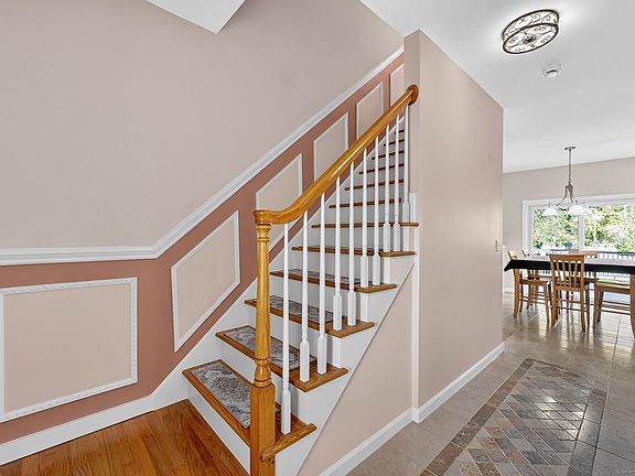 Nestled on a quiet cul-de-sac & set on a beautifully private, 1.37-acre lot, this immaculate & completely remodeled 4BR Colonial will not disappoint! A welcoming paver walkway leads to your covered front porch, offering a warm introduction to what awaits inside. The foyer features custom tile flooring that opens to an amazing eat-in kitchen w/travertine floors & backsplash, ample cabinets, pantry & SS appliances. From the bright & airy kitchen, a slider opens to a spacious 700 sq. ft. Azek deck w/reinforced LVL beams..ready for a future hot tub & ideal for entertaining. You'll love the sun-filled great rm boasting cathedral ceilings, FP w/pellet stove insert & gleaming hardwood floors. A newly remodeled half bath with a Toto toilet, along with a formal dining rm & living rm..both showcasing hardwood floors-complete the 1st floor. Ascent to your 2nd floor where you'll find the primary suite that includes a walk-in closet & a fully remodeled bath w/high-end travertine tile shower & flooring. 3 additional bedrooms share a remodeled guest bath w/custom tile finishes. Walk-up attic is plumbed & ready to be finished, offering excellent expansion potential. The basement has also been beautifully finished, featuring a full bath, workshop & generous storage space. Other wonderful features include a new roof & gutter guards, new A/C compressor & freshly painted throughout. Every inch of this home reflects attention to detail & pride of ownership! This home truly needs nothing but YOU! * Garage Sink- Cold and Hot water * Generator and generator hook up in Garage * Walk up Attic.. Plumbed for future bathroom * New roof on house and shed (2022)(30 year architectural shingle) * New gutter guards (2022) * New A/C compressor and A-Coil (2022) * New Hardwood floors on 2nd floor (2022) * Pellet stove and Stainless steel flue (2020) * New Kitchen stainless steel stove and dishwasher (2023) * New Kitchen travertine flooring and backsplash (2023) * Newly remodeled 1/2 bath with Toto toilet (2023)* New remodeled 2nd floor bathroom with custom new tile shower with rain shower head and new toilet (2025) * Primary bathroom with travertine floor and shower (2021),a new toilet (2025) * New Front door (2021) * New slider (2021 * New windows in garage (2021) * New Window treatments (2025) * Freshly painted throughout entire home.. all walls and ceilings (2024) * Remodeled finished basement (2025)* New light fixtures * Newer 10 x16 shed with electricity (2022) * New 700 sq. ft, Azek deck with electrical, helical piles and LVL beams added for future hot tub (2022)