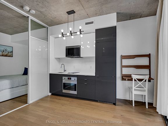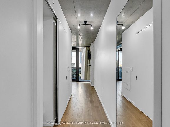 Welcome to this 1 bedroom stylish space that offers an east-facing exposure and fills the space with warm morning light through floor-to-ceiling windows. The open-concept layout, with expose concrete ceiling, large terrace and contemporary finishes make smart use of every inch-perfect for first-time buyers, young professionals, or savvy investors alike. Enjoy the convenience of two secure bike racks, ideal for urban living. Nestled in a modern, less-than-5-year-old building, residents have access to exceptional amenities including a fully equipped gym, children's playroom, outdoor BBQ area, and guest suites for visiting family and friends. Steps from Corktown Commons, Riverside, the DVP, and the Distillery District, this location offers effortless access to transit, parks, and Toronto's downtown core.