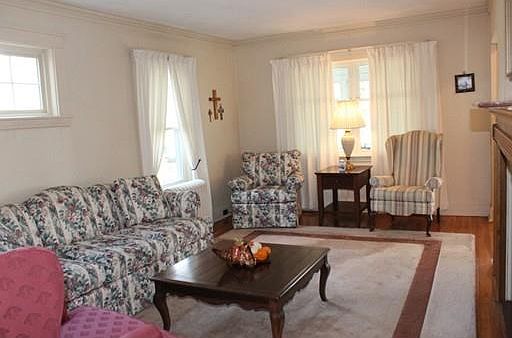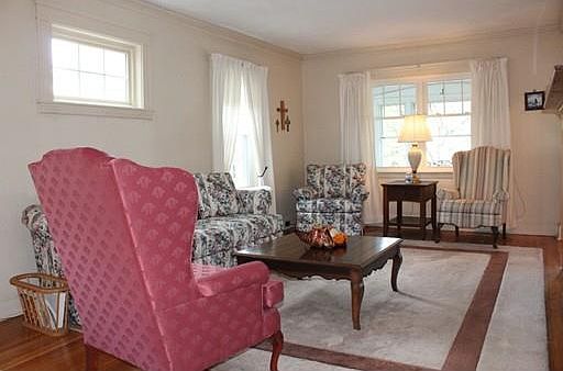 Charming village colonial with a 28' enclosed front porch. On one side of the front foyer, the front-to-back living room has a fireplace and hardwood floors. On the other side, the formal dining room has a beautiful 6', glass front,china cabinet built in with extra drawer space below. The eat-in kitchen has access out to the side of the house and a back stair to the bedrooms. An addition off the back adds a 14'X24' master suite, with a family room below. The basement also has a rec. room and plenty of additional storage in the unfinished area. The windows have been replaced, extra insulation was added, gas heat and hot water, make this a very energy efficient home. Located on a quiet side street in a wonderful neighborhood, it's just a short distance to the golf club, the commuter rail station, and the Broadmeadow School, as well as easy access to major highways.