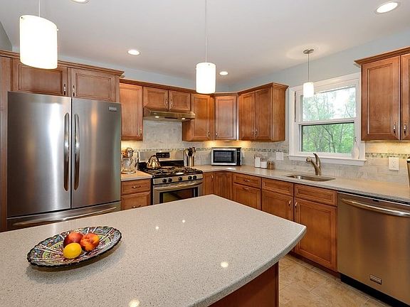 Updated with a decorators touch...since 2011-NEW Kit w/custom cabinets,granite, ss appli; new bath, re-fin hdwd, new CA + roof. Nat'l Gas heat! 3BR-1.5baths + Fin w/o bsmt. Backs up to Nature Preserve