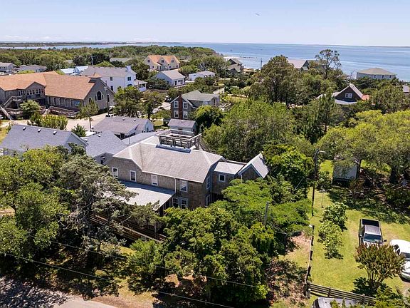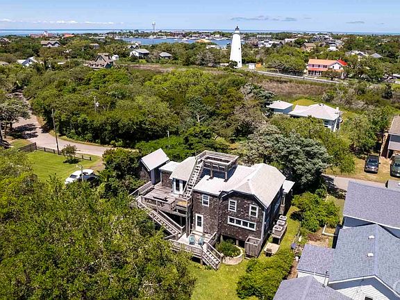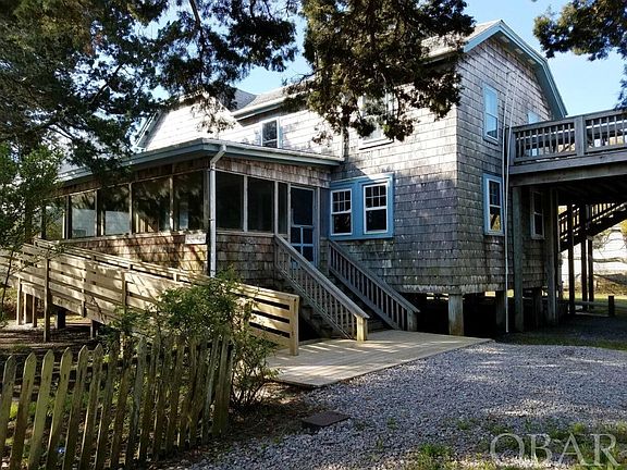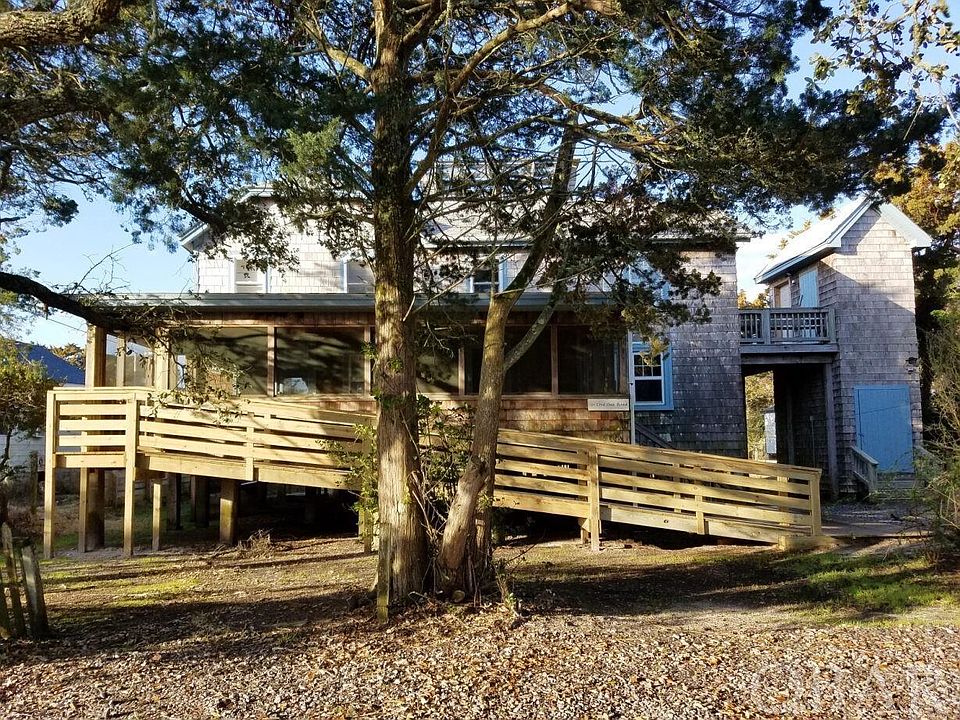 The National Register of Historic Places has the original building date of Purple Martin estimated at 1910. This 3 bedroom/3 bath historic island home rich with Ocracoke charm of yesteryear has beautiful views of the Ocracoke Lighthouse! Ideal location; strolling distance to Springer's Point Nature Preserve for a day of sunbathing, frolicking in calmer waters, kayaking or beachcombing. Interior includes bead board walls and ceilings, wood floors, original staircase and banister, plenty of windows for natural light, large eat-in kitchen with built in buffet for large gatherings, tiled kitchen bar with stools for extra seating, utility room, gracious living room, open sun deck off the owners ensuite (w/updated bathroom) and a convenient locked second floor room currently used for owner's personal items but could make a nice den/office area, central heat /ac and ceiling fans. Exterior amenties include a huge furnished front screened porch with ceiling fans and access to the kitchen for easy entertaining, nice grassed yard with mature trees, outdoor shower, a ramp from the parking area to screened porch, a rooftop deck with spectacular views of the lighthouse and Pamlico Sound. For the owner or renter looking for unhindered access Purple Martin has a ramp for access to the first floor and an elevator to the second floor.