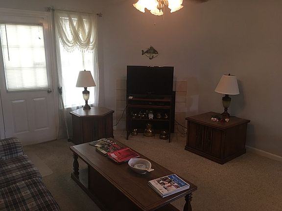 End unit with glassed in patio room. 2 bedrooms, 2 baths, front kitchen, & foyer.