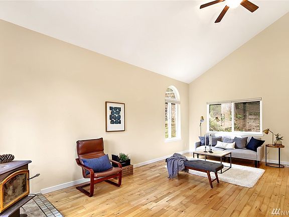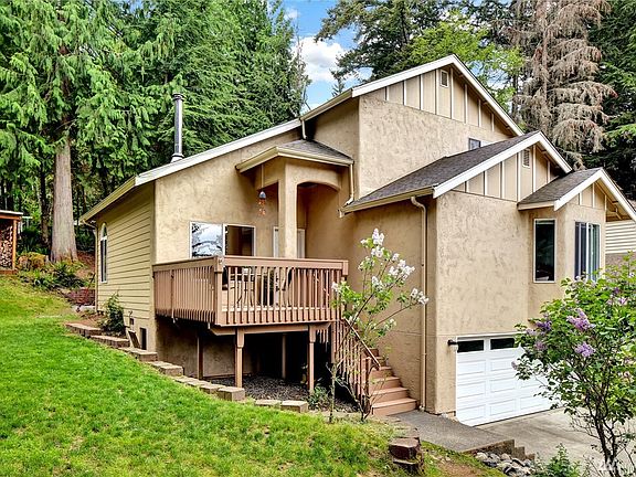 Stunning 4 bed 2.5 bath home on a large peaceful corner lot in Sudden Valley. Nearly 6,800 sf lot is adjacent to a green belt, affording wooded privacy and space to roam and play. Perched high on a hillside, you have majestic mountain views. Unique sunny location in gate 5. High quality maple flooring. New stainless appliances complement elegant tile back-splash and quartz counter tops. Main floor master suite has new carpet. Extensive deck perfect for BBQs. Invisible pet fence! Better hurry!