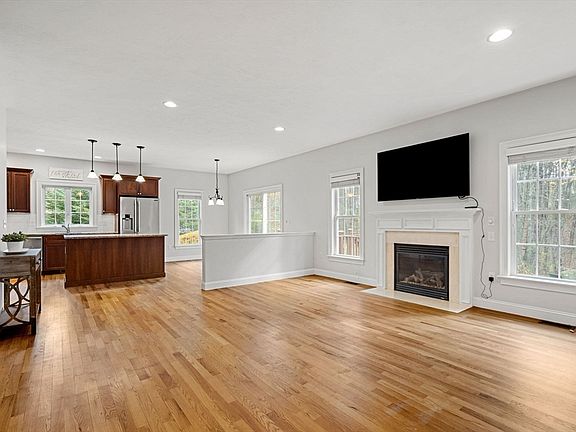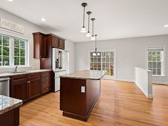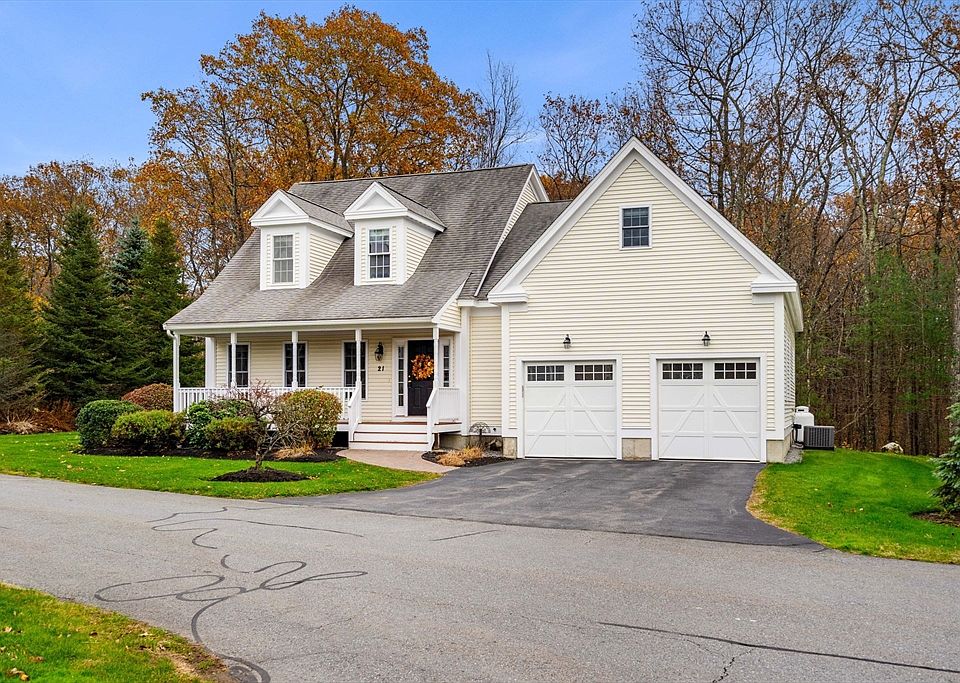 Beautiful stand-alone single family detached condo in the sought-after Academy Hill neighborhood, offering bright, open-concept living and thoughtful design. A welcoming farmer’s porch leads to a spacious kitchen and living room with custom moldings, hardwood floors, granite counters, a center island breakfast bar, walk-in pantry, and oversized windows. Enjoy cozy evenings by the gas fireplace or step through the sliders to a private deck for outdoor dining. The first-floor primary suite features a walk-in closet and a lovely bath with a double vanity and step-in shower. A formal dining room with wainscoting, half bath, and designated laundry room complete the main level. Upstairs offers 5 rooms: two large bedrooms, family room, an updated full bath, and two added sun-filled bonus rooms with hardwood floors and great storage. The corner lot provides lovely green space. The condo fee covers all exterior care, including roof and siding carefree living in a top-ranked school district!