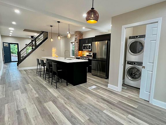 Complete renovation top to bottom ! Hardwood floors throughout, new windows, recessed lighting, off street parking, ceiling fans, custom equipped kitchen with stainless steel appliances, 1st floor washer and dryer combo in half bath, new siding, newly built deck off kitchen. 12 month lease no smoking $65 application fee tenant pays gas, electric, water, sewer and trash