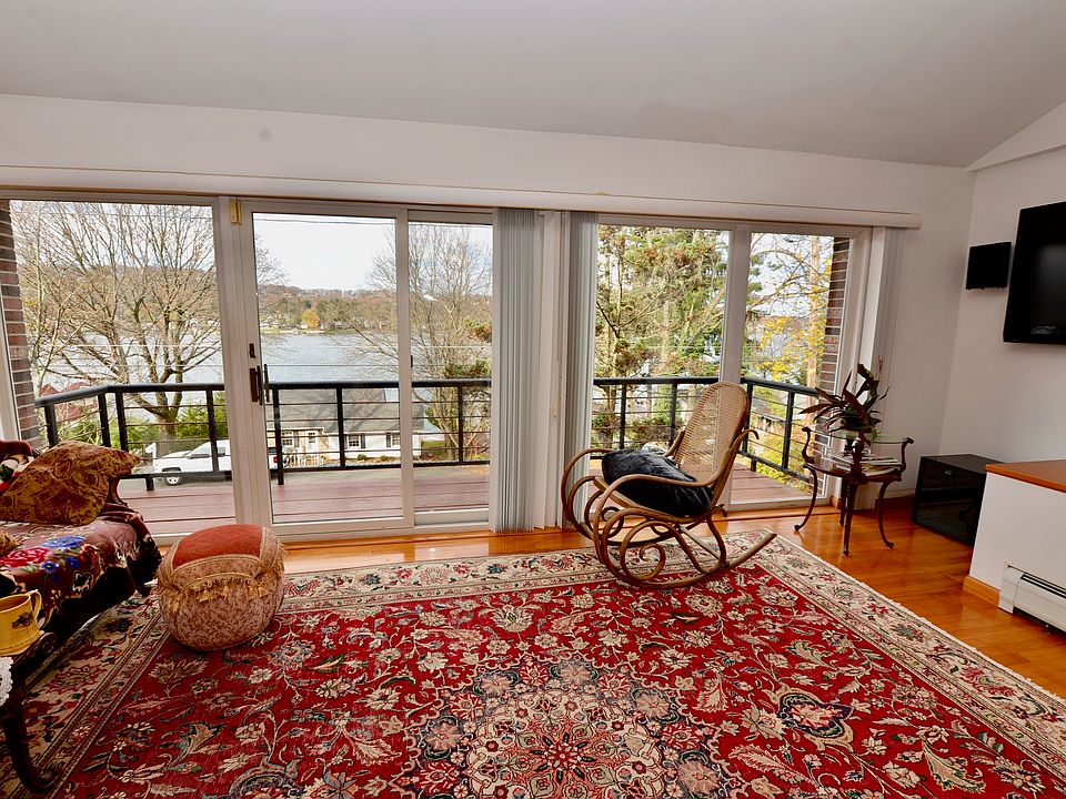 Fabulous lake views, the all brick facade, two sets of stone stairs and paver stone driveway sets this home apart from the typical Lake Mohawk homes. The additional parking and entry from East Shore Trail add to the fabulous exterior features of this home. Ample parking for your boat either in front of the home on Maple or in the back of the home on East Shore Trail is a rare find.The floor plan offers the possibility of a mother/daughter with full bath & 2nd kitchen on the lower level. A floor-to-ceiling 3 sided stone fireplace will warm you on chilly Fall and Winter nights. Living room sliders will lead you to a balcony where you will enjoy stunning year-round views of the lake and sunsets. Dining room sliders will lead you to a stone patio in the private rear yard where you will enjoy Summer barbecues.