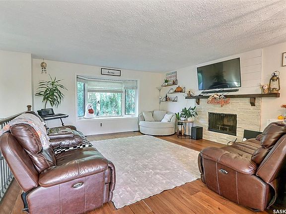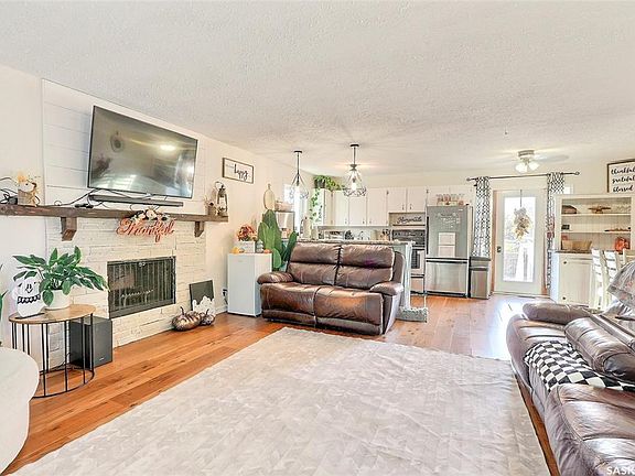 Affordable Family Home in Birch Hills Backing Green Space! Welcome to this 4-bedroom, 2-bathroom bi-level home located on a quiet street in the friendly town of Birch Hills. Built in 1978 and offering 961 sq/ft on the main level, this home is perfect for families seeking comfort, space, and affordability. The open-concept main floor is bright and welcoming, featuring a cozy living room with a fireplace, a U-shaped kitchen with stainless steel appliances, and direct patio access to the deck overlooking the fenced southwest-facing backyard and green space. Two bedrooms and a full bathroom complete the main level. The fully developed basement offers a spacious rec room with large windows, two additional bedrooms, a 3-piece bathroom, and laundry/utility space. Outdoors, you’ll find a newer 28x28 double detached garage with alley access, a double driveway in the front, mature trees, and sod done in 2023. Additional features include a durable tin roof for low maintenance, newer windows (2019), central air conditioning (2025) and a fantastic location just steps from the school, parks, and all the amenities Birch Hills has to offer. This is a wonderful opportunity for a new family looking for a safe, quiet, and welcoming community to call home.