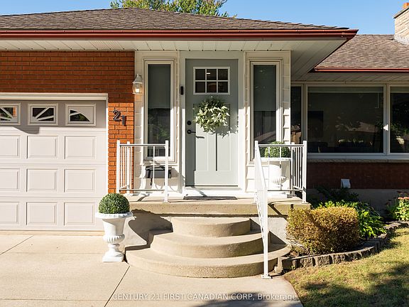 Welcome to 21 Marbenor Crescent, a fully updated and meticulously maintained 3+1 bedroom, 2Full Bathroom brick Bungalow in London's desirable Fairmont subdivision. Fully renovated in2021, it features new hardwood floors, a cozy gas fireplace, large updated windows and spa-like Spacious bathrooms and bedrooms. A versatile year-round room near the updated kitchen and dining overlooks the professionally landscaped backyard with private patio and shed. The lower level offers a spacious recreation room, 4th bedroom, full bathroom, separate side entrance, and inside access to the oversized single garage. With modern mechanicals, close amenities and an elementary school just steps away, this move-in-ready property combines comfort, convenience, and lasting value in a quiet, family-friendly neighbourhood. This is the home you've been looking for.