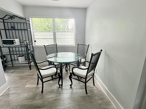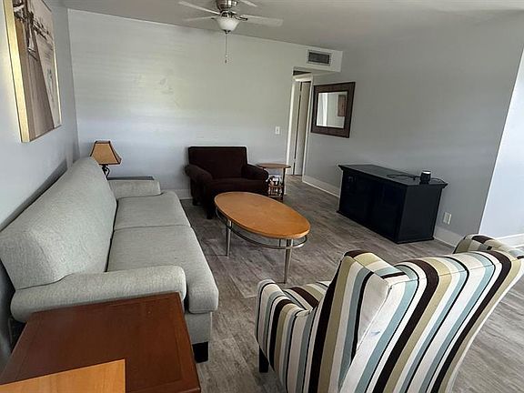 How does cocktails on your private screened enclosed balcony overlooking plush gardens, fruit trees, exotic birds wildlife and flowing canal outside your primary bedroom with walk in closet sound? This rare vacancy includes a ''State of the art'' gym membership AND HBO w basic cable.Our Courtyards offer ample stone tables and umbrellas for family BBQ and fresh herbs flowers and a delightful ylang ylang tree make this home magic.Emotional support pets are welcome & the association is non smoking to protect our lungs. Newly remodeled with modern Gray plank tile floors, 6 panel doors, glass shower doors, newer appliances under 1 year, circulating fans, & dimmers throughout for romantic ambiance.Entire condo has FRESH PAINT and NEW floors.