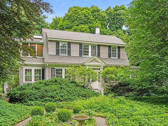 Offers due noon on Tuesday, June 24th. Please send in one PDF and make offers good for 24 hours. Nestled on a quiet, tree-lined street in Precinct 1, this 3 bedroom Gambrel-style home offers a rare blend of charm, privacy, and thoughtful updates. Surrounded by mature trees, a manicured parterre, & lush grounds, the property enjoys a secluded & magical garden oasis. The front hall opens to living room with cozy wood-burning stove, a charming home office that leads to a deck shaded by trumpet vine-draped trellis, & dining room that opens to a comfortable den. The vintage-inspired kitchen is cheerful & bright, with direct access to screened porch. The 2nd floor features a primary suite with a fireplace, along with 2 additional family bedrooms that share a full bath. A recently constructed 1 car garage includes an attached, climate-controlled workshop perfect for use as an art studio or additional home office. Located just blocks from Dedham’s Village Center.