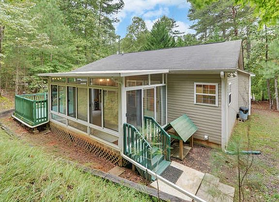 This Easy One Floor Living, 2 Bedroom 2 Bath Ranch Home in Gated Resort Community is just where you want to be in the North Georgia Mountains. From the Welcoming Screened Front Porch into the Spacious Great Room with Rock Fireplace into the Large Eat in Kitchen with Custom Cabinets and lots of Counter space, All Appliances Remain. You'll Love the additional Living Space in the Multi-Seasonal Sunroom with Grilling Deck just outside. Master Bedroom with In-Suite Full Bath, Tile Floors, Instant Hot Water and more. Second Bedroom, Hall Full Bath and Large Laundry Closet with additional storage. Tons of Extra's too: Furnishings remain, Sunroom with Custom Blinds & Ceiling Fan with Heater (you just don't see those around). Generator Shelter, Great Storage Building/Shop with Power. All Electric with Gas Log Fireplace. Double Lot Already Combined with the Association gives you .91 acres. All paved road for added convenience. Resort Amenities Include 3 pools (One covered for year round swim) Tennis, Fitness, Pickleball, River Parks and much more.