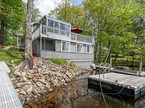 Come home to a slice of paradise on the tranquil shores of Franklin Pierce Lake! This captivating year round fully-furnished lakefront abode tucked away on a secluded lane, promises a mesmerizing panorama of the water from every angle. Embrace cozy evenings by the gas fireplace or indulge in sun-kissed afternoons by the water's edge. Delight in the brilliance of sunsets from the airy solarium or deck where you can relish the open skies. Awaken to the serene serenade of loons drifting across your private waterfront, setting the perfect tone for each day. Spread across 483 acres, Franklin Pierce Lake offers endless recreational options like swimming, kayaking, boating (with no restrictions), & fishing, along with winter fun. This cherished retreat features 2 docks accommodating 4 boats, a floating wooden raft, and ample green space for gardening or entertaining, and best of all, a cozy bunkroom that sleeps four comfortably. Lovingly cared for, this charming residence invites new occupants to savor its idyllic rural setting and the allure of its sought-after lakefront position. Conveniently situated just an hour and a half from Boston, the Seacoast, & the White Mountains with skiing destinations such as Pat's Peak & Crotched Mountain only 20 minutes away, this property offers an ideal chance to embrace waterfront living at its' finest. Tours begin Thursday, May 23rd. Bunkroom is not reflected on the tax card.