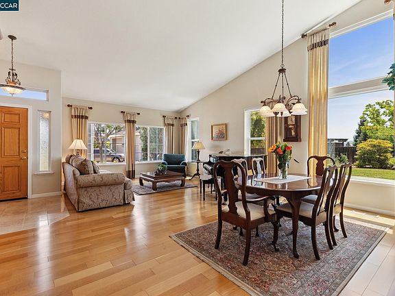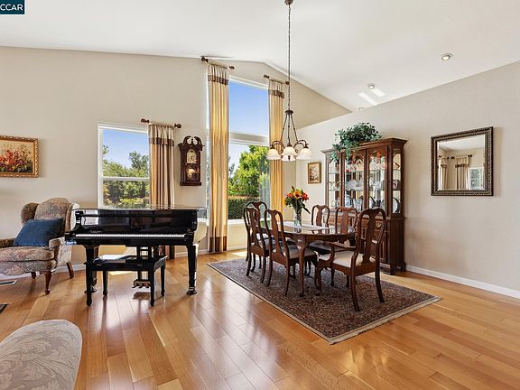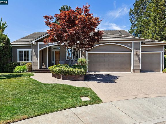 Nestled at the end of a peaceful cul-de-sac in one of Pleasant Hill’s most sought-after neighborhoods, this single-level home offers a rare blend of comfort, elegance, and views. Step inside and feel the warmth of a bright, open-concept layout with soaring vaulted ceilings and sun-drenched windows. Whether you're entertaining guests or enjoying a quiet evening, the spacious living and dining areas provide the perfect setting for life’s moments, big and small. The heart of the home is the expansive great room, anchored by a cozy fireplace and seamlessly connected to the kitchen and breakfast nook—ideal for casual mornings or lively holiday gatherings. Retreat to the serene primary ensuite featuring a second fireplace, a spa-like bathroom with a soaking tub, separate shower, and a generous walk-in closet. Step outside and enjoy the lush, level lawn and patio—perfect for outdoor dining or simply soaking in the views. Nature lovers and active lifestyles will appreciate the nearby Canal Trail, offering easy access to top-rated K-12 schools and Diablo Valley College. Additional features include a 3-car garage, proximity to parks, shopping, dining, public transit, and major commuter routes. Discover where comfort meets beauty at Vineyard View